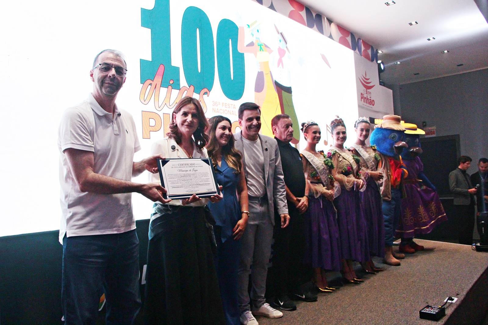 O evento que marcou a contagem regressiva de 100 dias para a próxima edição da Festa Nacional do Pinhão foi palco, na quarta-feira (11 de fevereiro), do ato de entrega do Certificado de Registro de Direitos Autorais da logomarca atualmente utilizada pela Festa.